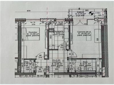 Compus din: sufragerie, dormitor, baie, bucatarie, hol, debara, balcon. Suprafata utila 59 mp + balcon 4 mp.
