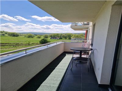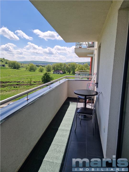 Apartament foarte spatios, dotat cu electrocasnice, balcon de 8 m cu acces din bucatarie si living cu panorama frumoasa spre padure.